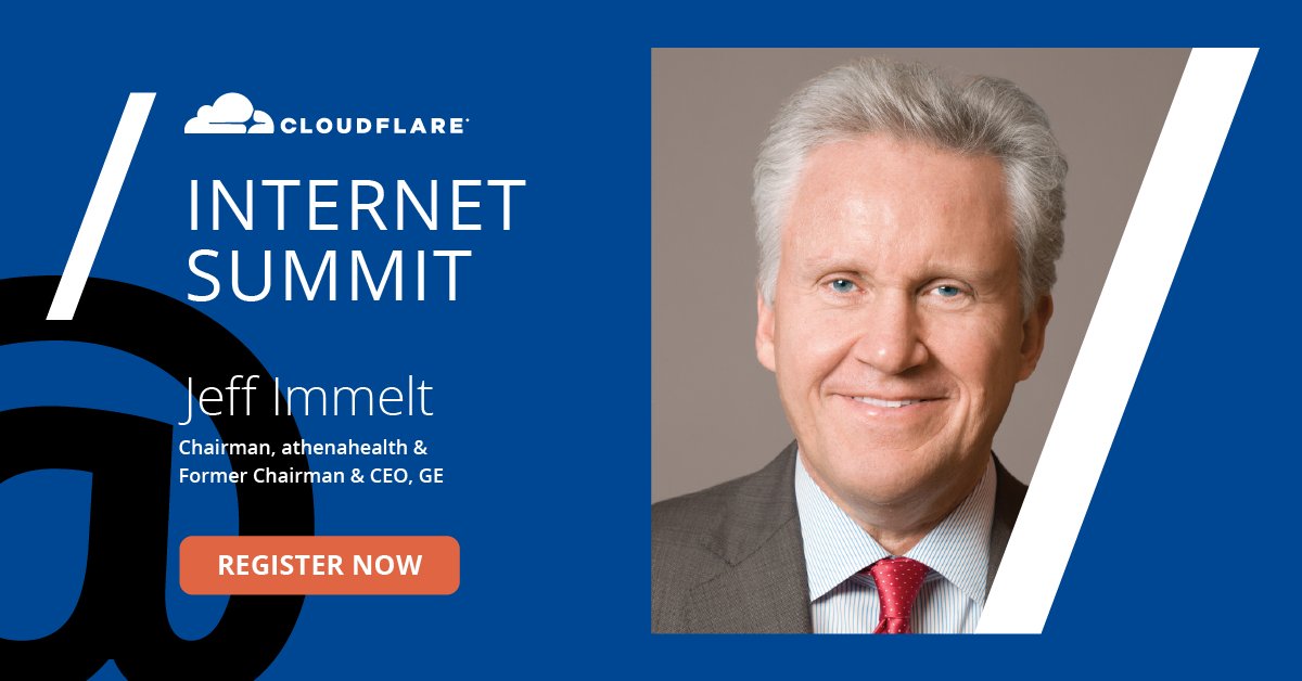 The @Cloudflare #InternetSummit is fast approaching. Register now to see @JeffImmelt and other thought leaders, executives, entrepreneurs, researchers, and operators discuss the future of the Internet. October 4th at Cloudflare HQ in San Francisco. https://cfl.re/2LjIFh2 pic.twitter.com/cTZuFTNG9U