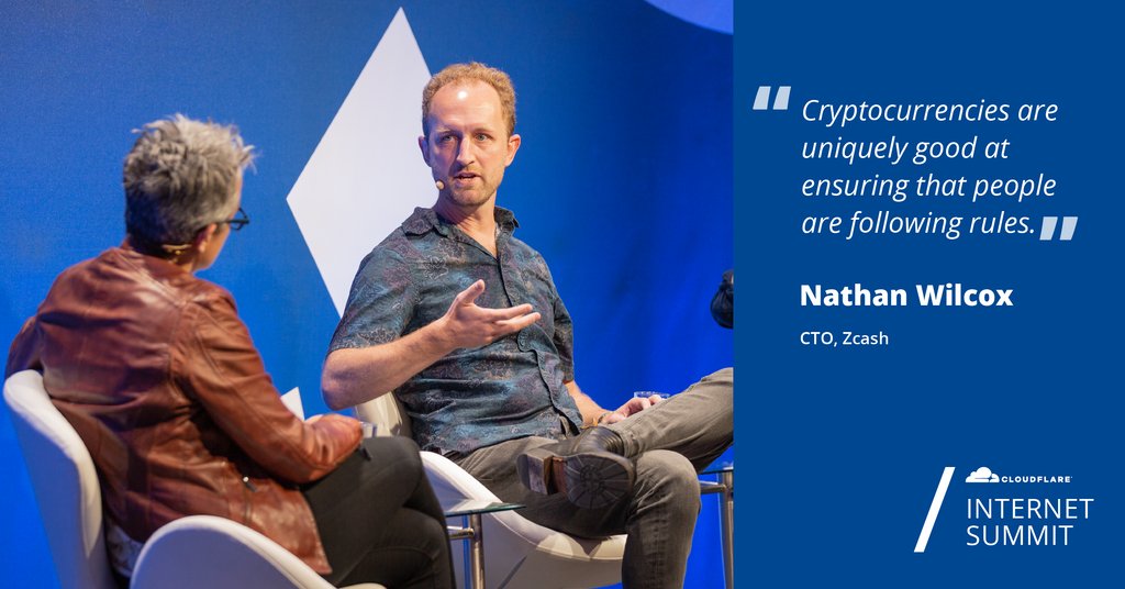 More highlights from @Cloudflare #InternetSummit! Cryptocurrencies: What Are They Good For?, with @least_nathan (CTO of @zcashco) and @adamludwin (CEO of @go_interstellar). Watch the livestream at https://cfl.re/2yeJxix pic.twitter.com/g7zb0sGxXh