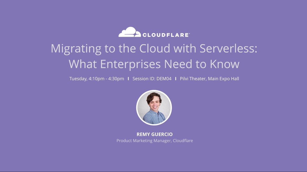 Don't miss @remyguercio speaking about #Serverless and @Cloudflare at @AWSreInvent in the Pivli Theater in 15 mins. https://cfl.re/2qN1sK5 pic.twitter.com/c4B00YfdI7