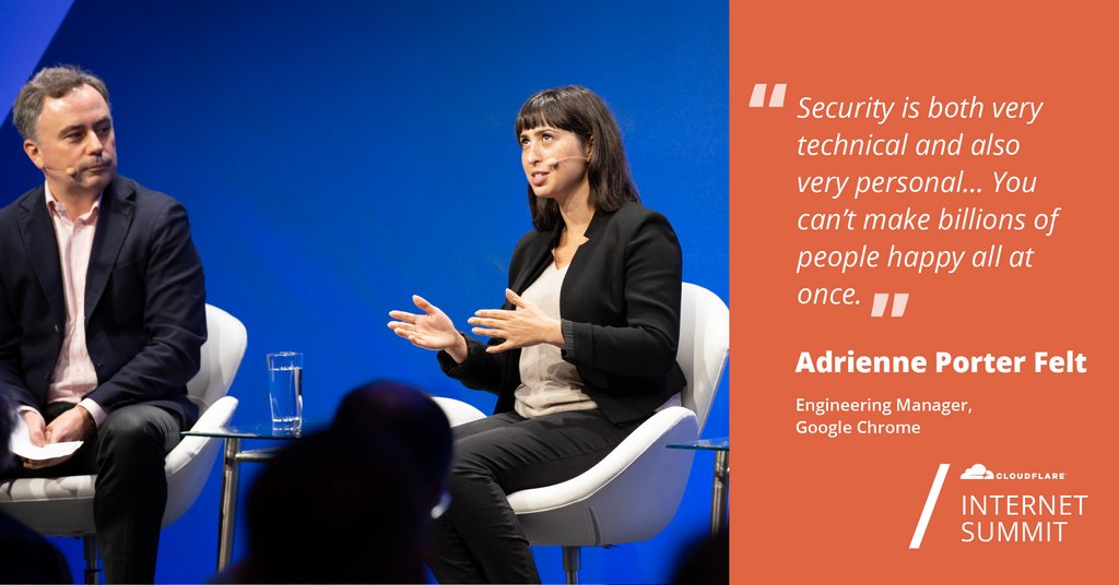 Highlights from @Cloudflare #InternetSummit! Creating Usable Security for Everyone, with @__apf__ (Engineering Manager on @googlechrome), @RoselleSafran (President, Rosint Labs) and moderation from @jgrahamc. Watch the entire session here: https://cfl.re/2FYAxoL pic.twitter.com/oSOB5aT3gA