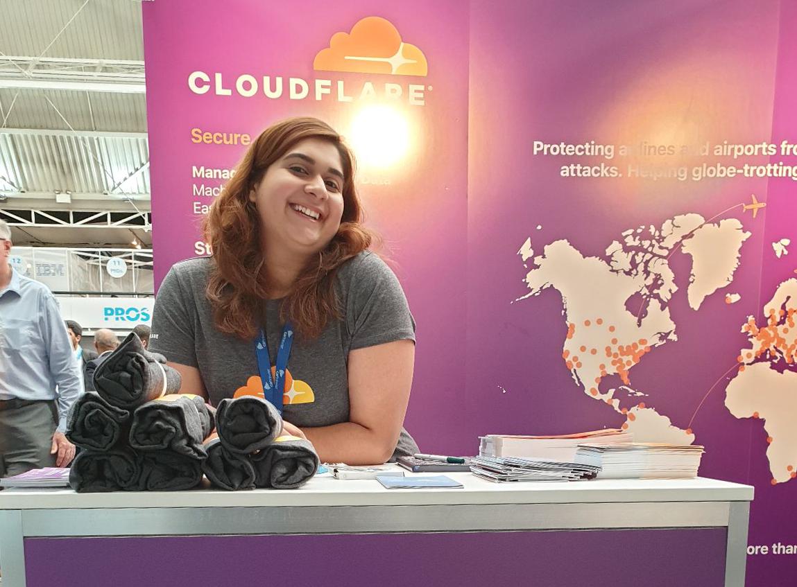 Come by our booth (39) and meet our team: @LuGobbo @shazftw @mahtin to chat more. Get a Cloudflare T-shirt too.pic.twitter.com/NWquMT6GZv