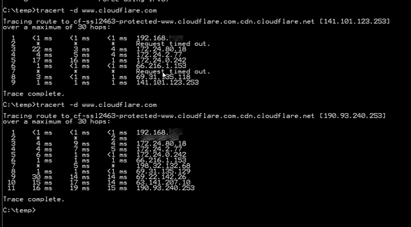 @CloudFlare Never mind, now working again. But I took a traceroute screenshot before/after. http://i.imgur.com/2lMHQQT.png pic.twitter.com/KtuYLJVLqx