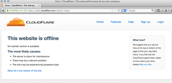 Is @cloudflare down? I'm in New Zealandhttp://twitpic.com/deyo68