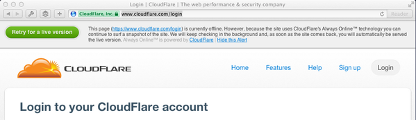 CloudFlare is offline, but protected by @CloudFlare #recursivepic.twitter.com/I0Ehmj4Kn7