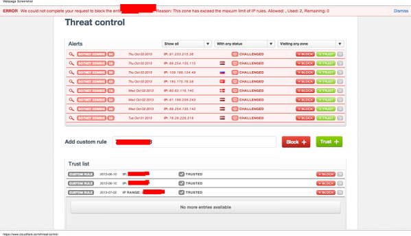 @CloudFlare cant whitelist or blacklist any ip for any account (checked with 4 different accounts)pic.twitter.com/si5fUgdGxq