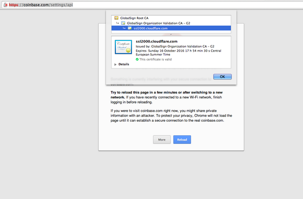 @coinbase getting an invalid certificate error for http://coinbase.com (http://ssl2000.cloudflare.com ) /cc @CloudFlarepic.twitter.com/5895pO4LZ1