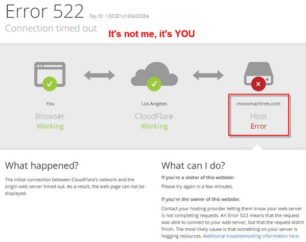 Terrible mistake moving our sites to @CloudFlare Day 1 -All sites down And they blame us Our @nexcess server is fine!pic.twitter.com/0ldZRZU3y0