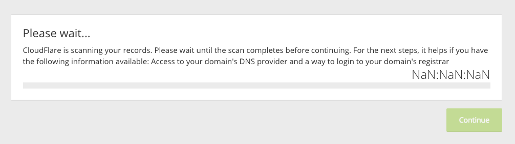 @CloudFlare Using Google Chrome. Steps to Reproduce: Use a Bogus (or Heroku) domain. Watch the DNS timeout at 15 seconds left. Reload Page.