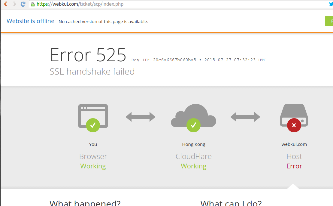 @webkul Please open a ticket if that is your site. General causes outlined here: https://support.cloudflare.com/hc/en-us/articles/200278659-Error-525-SSL-handshake-failed …