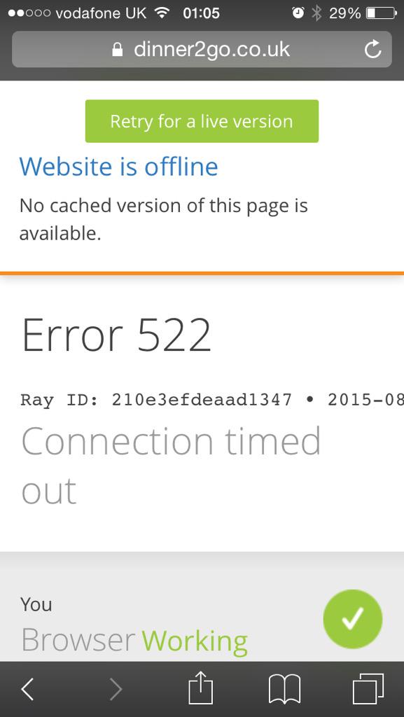 Hey @CloudFlare, what's going on with our website? We transferred DNS to you guys, and it keeps timing out.http://Dinner2go.co.uk