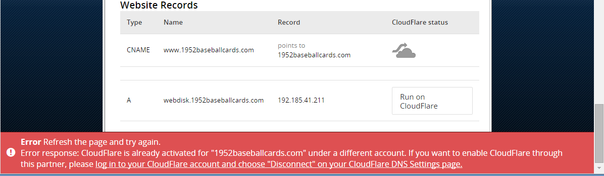 @CloudFlare@octal@eastdakota they're on hostgator, adding to new account fails because it's in old account still.pic.twitter.com/p3fPYinhjf