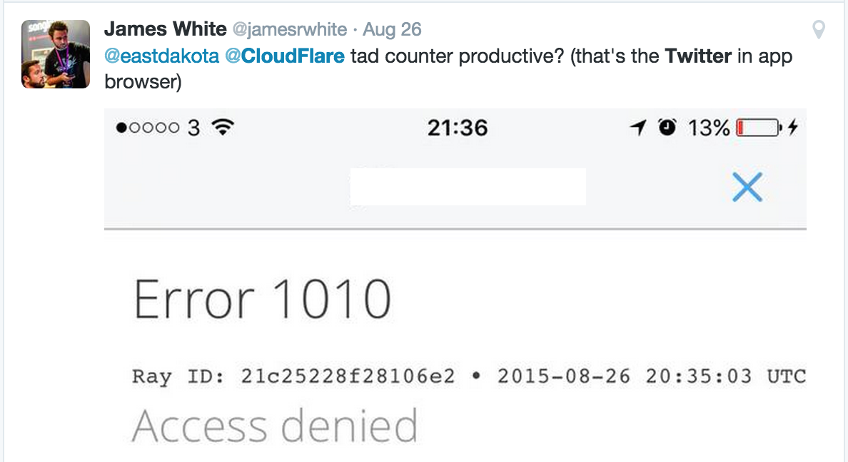 @CloudFlare was also experiencing this with the browser integrity check. Great analysis!Thanks. Twitter will use this to make your timeline better. UndoUndo