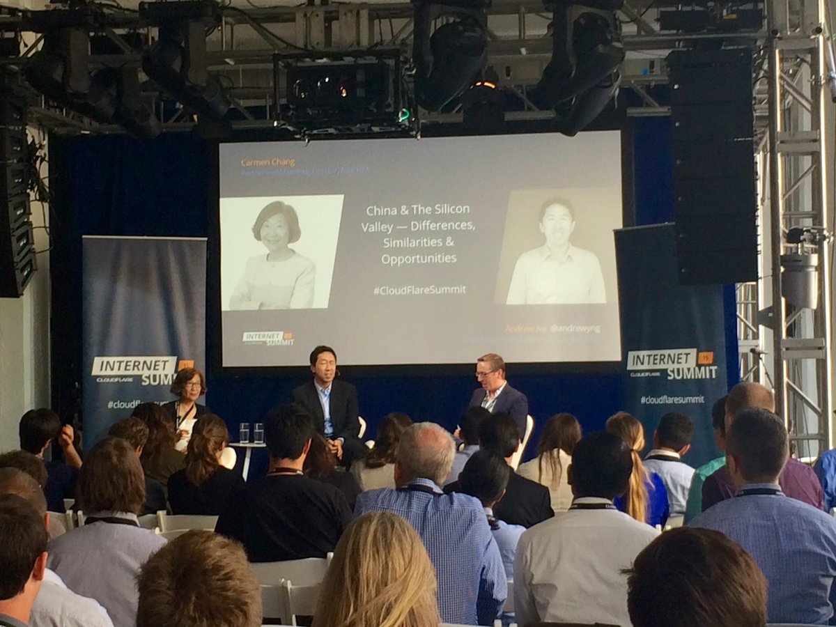 Fascinating next panel on challenges & opportunities in China: Carmen, @AndrewYNg @joshuamotta #cloudflaresummitpic.twitter.com/gN0l4YStXu