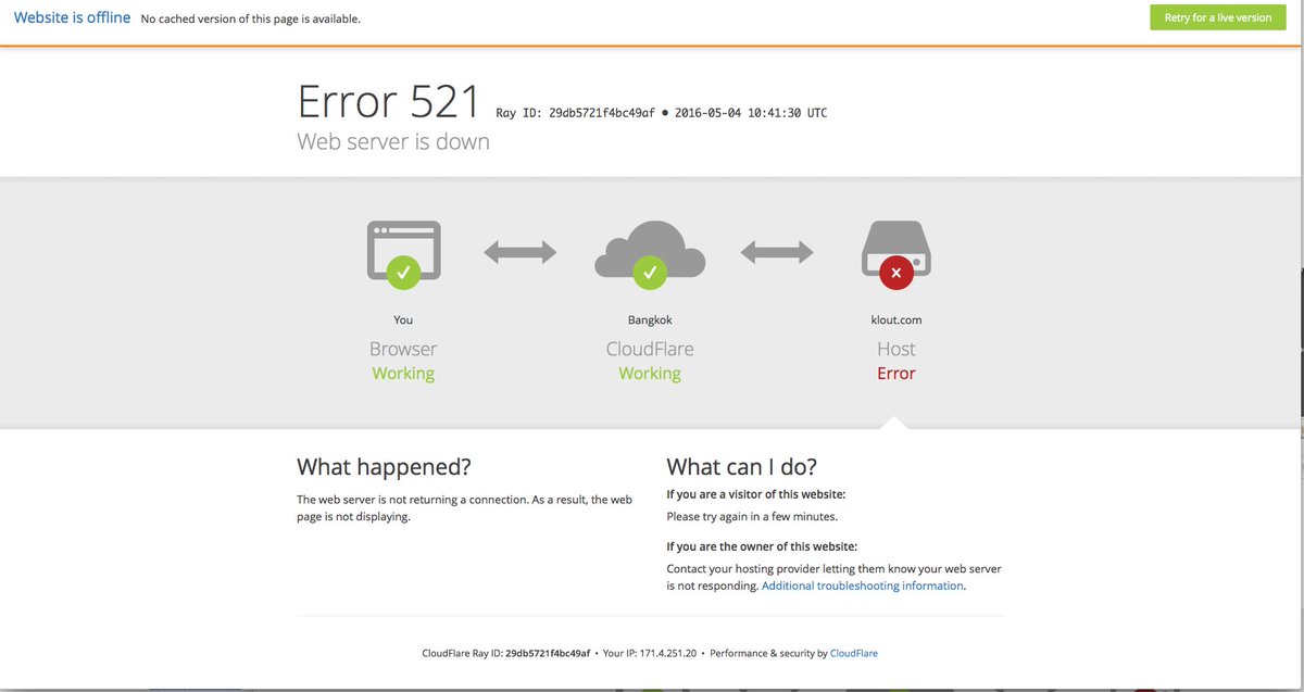I'm in Thailand and can't log onto @klout @CloudFlare! What's the problem, please? #Error522pic.twitter.com/yvpwnnXjFG