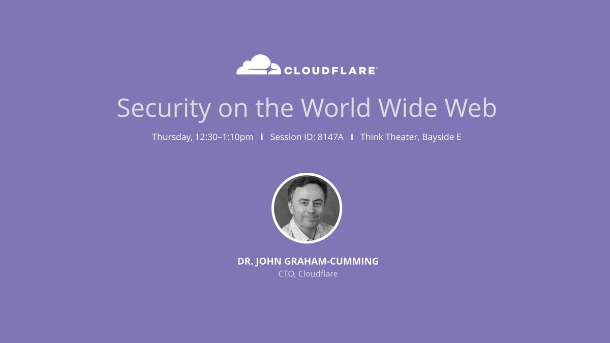 Don't miss @jgrahamc talking #security at #Think2018 later today. 12:30pm in the Think Theater. http://cfl.re/2FWheIn pic.twitter.com/bL86PbKxxr
