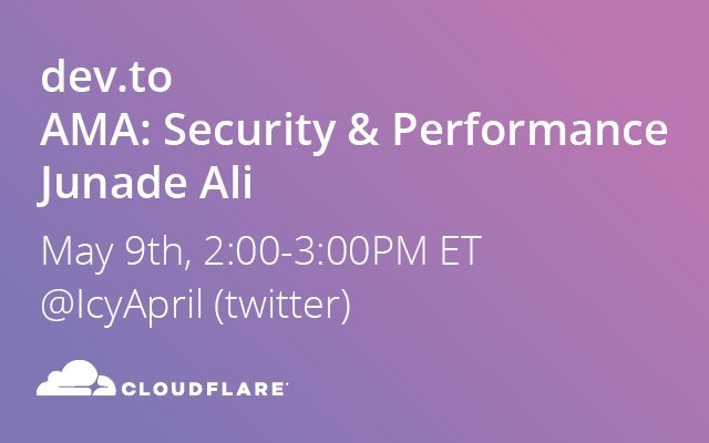 Don't miss your chance to ask @Cloudflare's @IcyApril your security and performance questions in tomorrow's #AMA on @ThePracticalDev, from 2-3PM ET. See more details here: https://cfl.re/2HvlEGW pic.twitter.com/1ZERO2MkNt