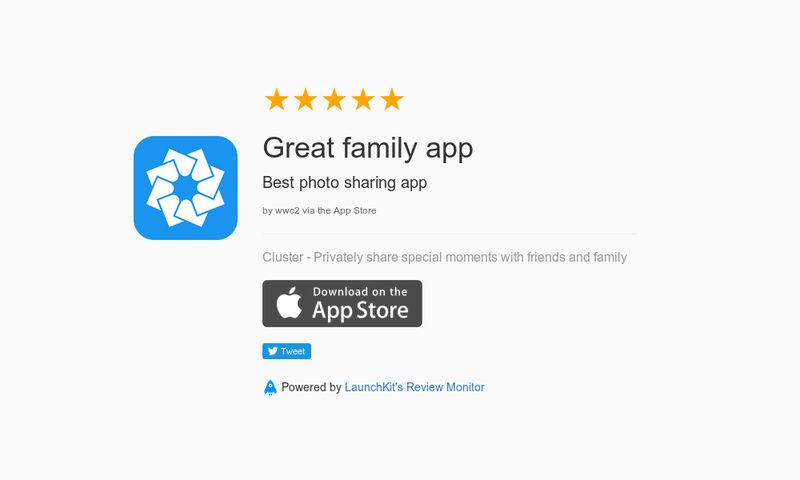 5 Star Review: "Great family app: Best photo sharing app" https://launchkit.io/reviews/qwXYGscVCl0 …pic.twitter.com/o9yTYp06QD