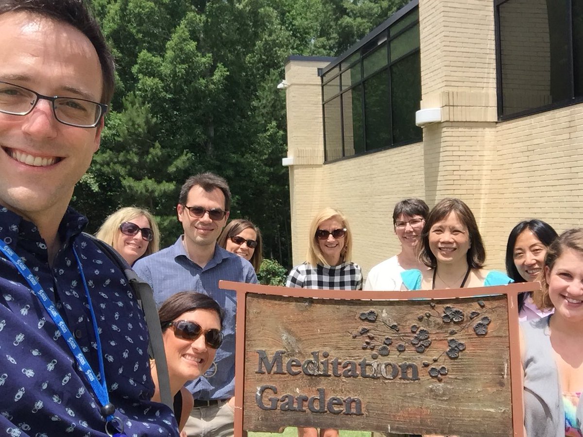 Practicing Biofeedback at the Meditation Garden at SAS Institute Inc Global Headquarters in Cary, NC.