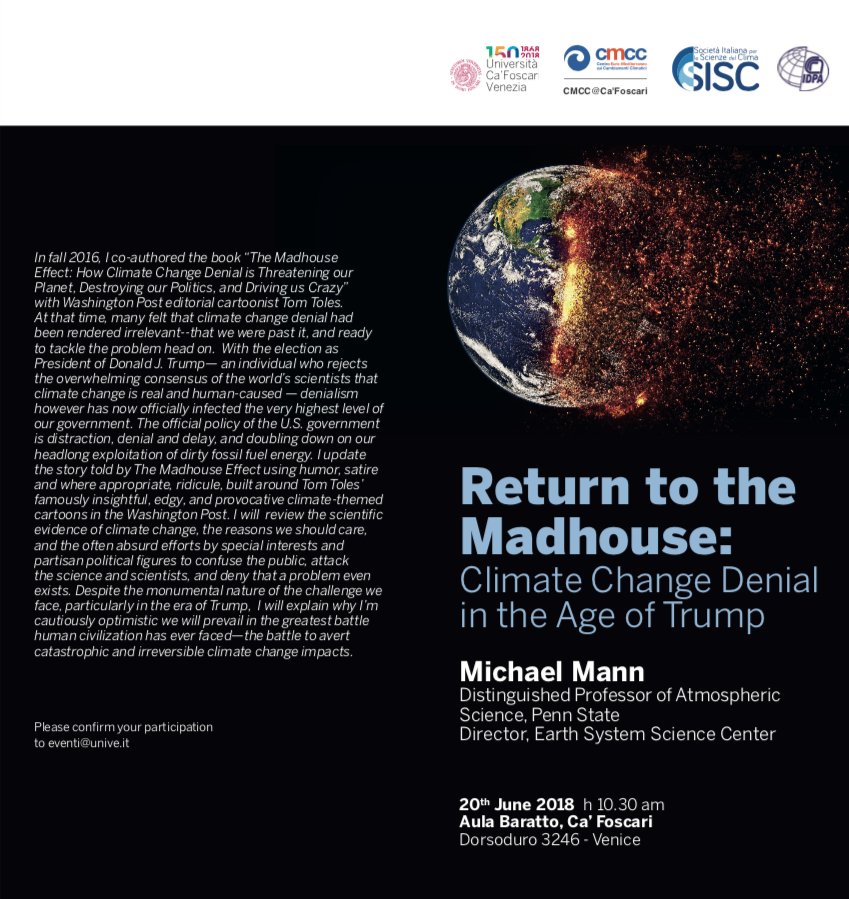 - Return to the Madhouse: Climate Change Denial in the Age of Trump - @MichaelEMann Distinguished Professor of Atmospheric Science, @penn_state Director, Earth System Science Center