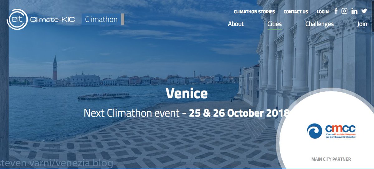 An intensive brainstorm to make #Venice a better place to live! Create a team & develop solutions for the climate challenge put forward by @comunevenezia @WeAreVenice @ClimateKICItaly @CaFoscari https://climathon.climate-kic.org/en/venice pic.twitter.com/NnzKPkdg6b