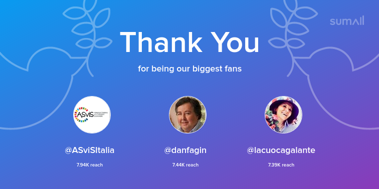 Our biggest fans this week: ASviSItalia, danfagin, lacuocagalante. Thank you! via https://sumall.com/thankyou?utm_source=twitter&utm_medium=publishing&utm_campaign=thank_you_tweet&utm_content=text_and_media&utm_term=74c445e3ae8a9bf28dcac691 …pic.twitter.com/Ai3V5byGXG