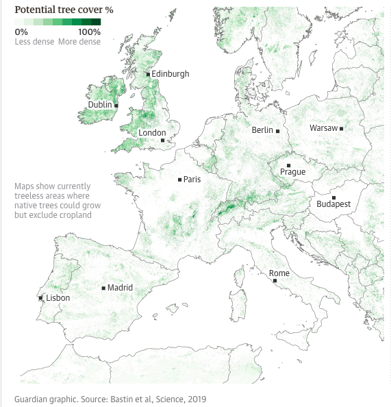 The potential for new #forests that do not encroach on cropland is high in the UK, Ireland and central Europe
