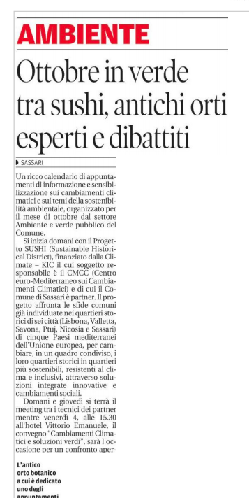#rassegnastampa #1ottobre @lanuovasardegna #Ottobre in verde nel @comunedisassari con @ClimateKICItaly @unissTwit pic.twitter.com/uJOTmOMsl1