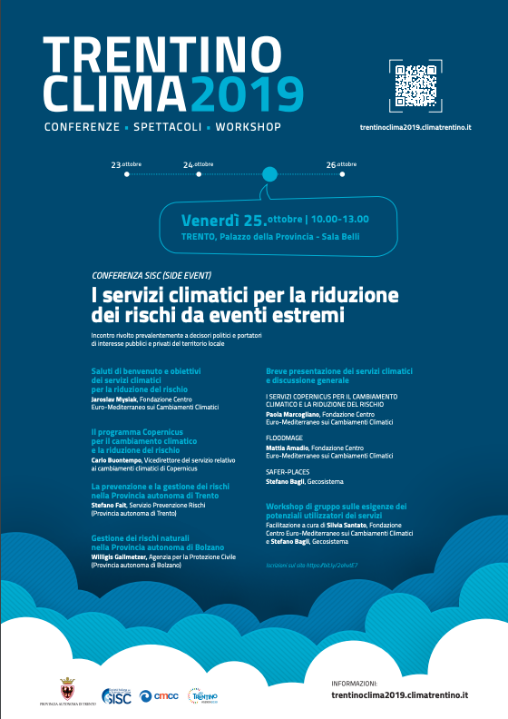 #25ottobre, h.10.00-13.00 Palazzo della Provincia #Trento @ProvinciaTrento #SISCClima I servizi climatici per la riduzione dei rischi da eventi estremi Incontro per i decisori politici e portatori di interesse pubblici e privati del territorio locale http://ow.ly/gC9u50wKB5T pic.twitter.com/SPszLPdhe8