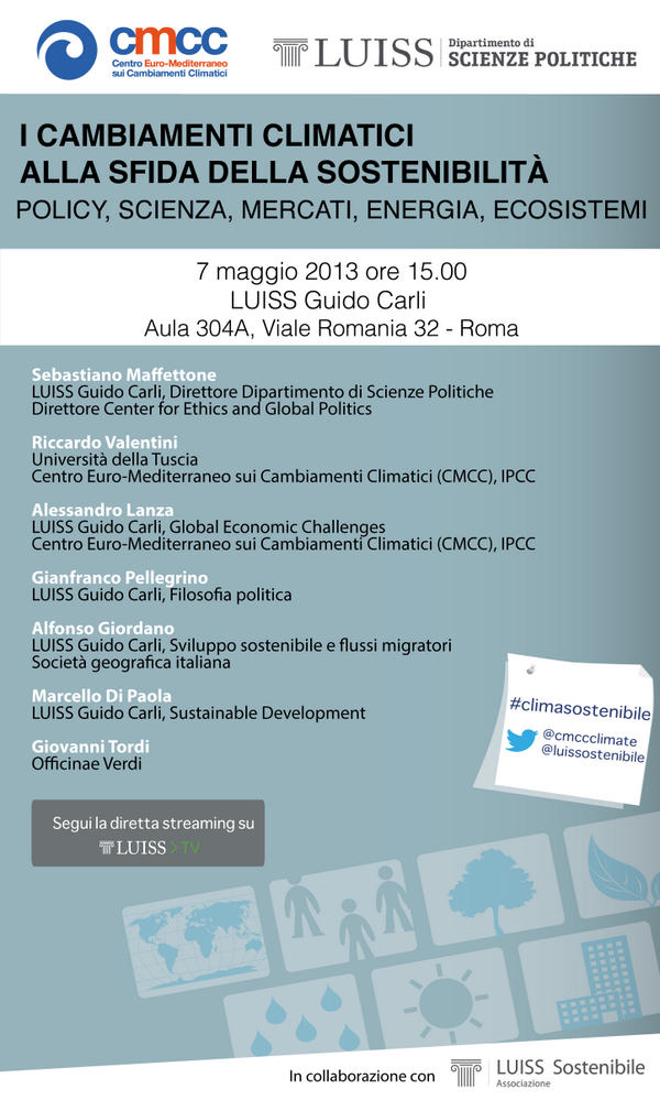Cambiamenti Climatici sostenibilità: policy scienza energia ecosistemi #climasostenibile @UniLUISS @Luissostenibilepic.twitter.com/6huBJZslCs
