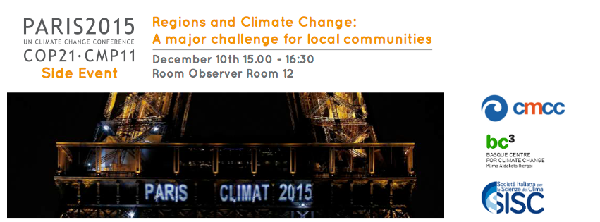 Here we are @COP21 to talk about Regions and adaptation @BC3Research @FEEMit @ICCGOV_climate @ccarraro_univepic.twitter.com/9TTfzhnIX2