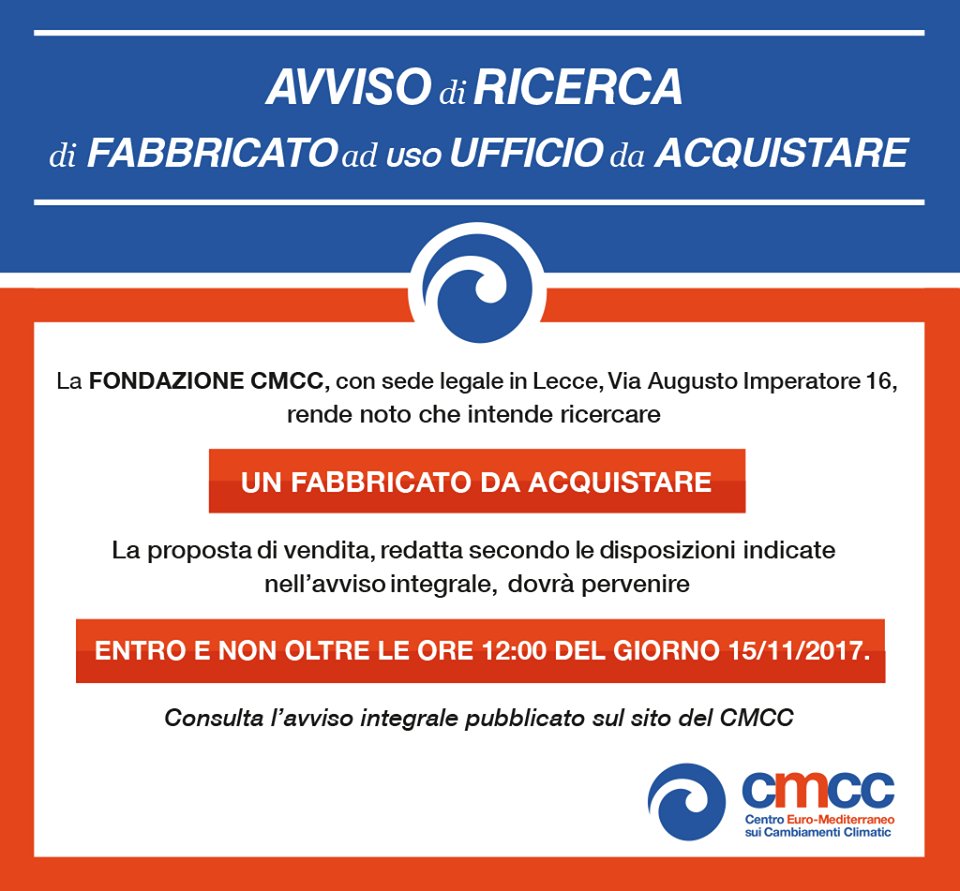 La Fondazione CMCC cerca un #fabbricato da acquistare per la sua #sede di #Lecce. Consulta il #bando integrale!