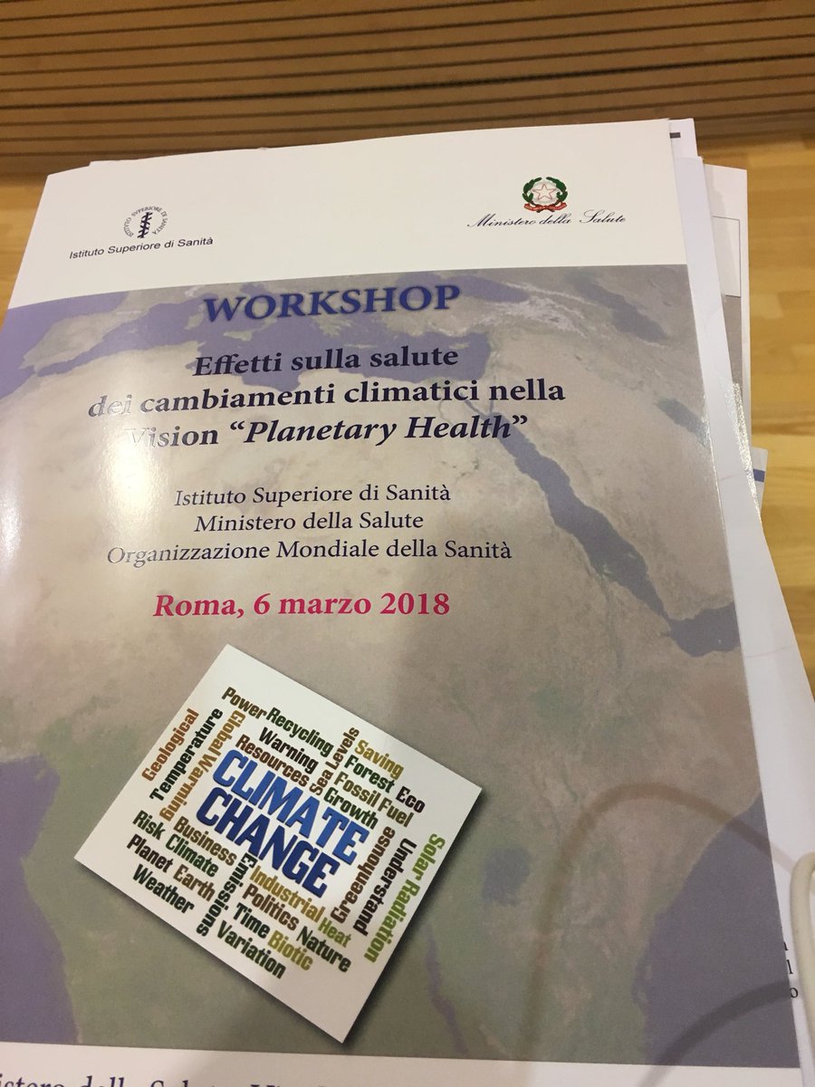 #cambiamenticlimatici e salute in #Italia:presentati al workshop "Effetti sulla salute dei cambiamenti climatici nella Vision “Planetary Health” le conoscenze scientifiche più avanzate,i dati più attuali, gli scenari futuri,le aree di impatto più rilevanti http://bit.ly/2oTF7ca https://twitter.com/DrMariaNeira/status/970997663595401216 …