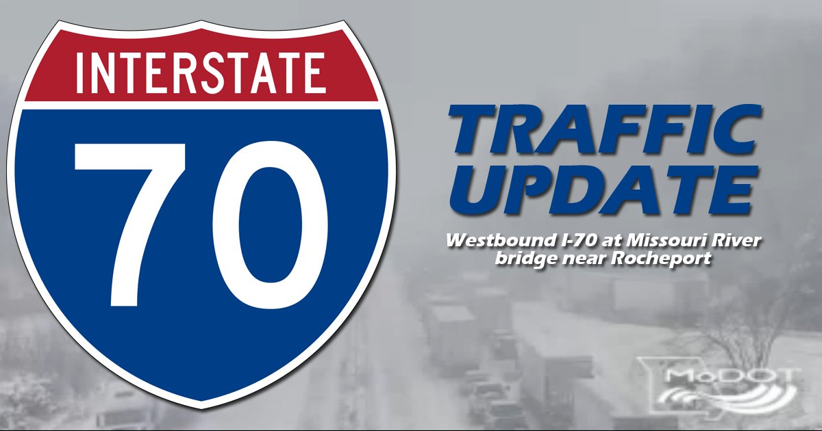Westbound I-70 at Missouri River bridge near Rocheport CLOSED due to multiple crashes. Closure is estimated to last several hours. Please use alternate routes.