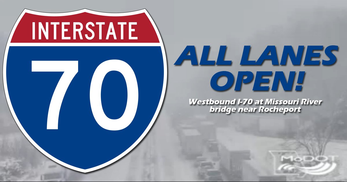 All lanes of I-70 are now OPEN! Thank you for your patience while crews cleared the area.