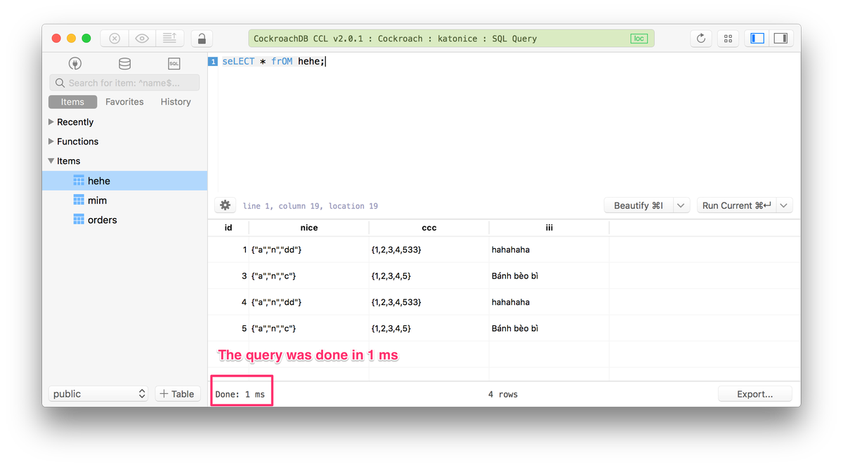 If you discover anything needed on the CockroachDB side, please let us know! We'd also love to hear about your experiences using CockroachDB with TablePlus, so if you want to share, I'll hit you over DM.