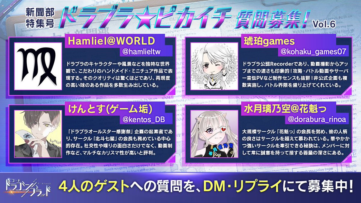 水月璃乃空@花魁っ @dorabura_rinoa こちらの4名にインタビュー予定! DM・リプにて質問募集中