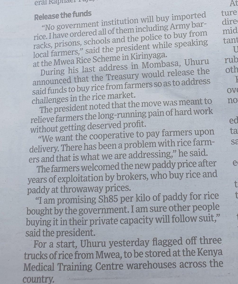 Why did it take President Kenyatta long to embark on practical steps to stimulate economic growth? No govt institution should buy imported rice (other foodstuffs). Promptly paying for local goods will enhance local quality standards. Good move by