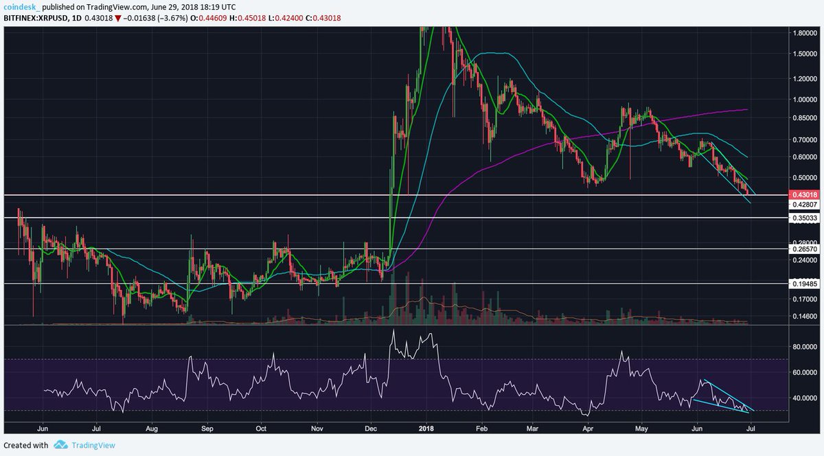 #XRP/USD#Ripple US Snapshot Outlook: Bearish below $0.42 Price is back to December 2017 levels with no nearby support Bullish divergence is mounting in the RSI - suggesting a bounce could be imminent, but the RSI trend lines will need to break for a meaningful price increasepic.twitter.com/miQRc3XhqX