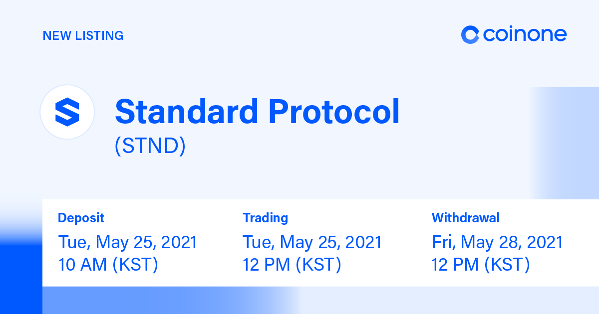 @standarddefi#스탠다드프로토콜$STND 코인원에 상장됩니다. Listing#StandardProtocol$STND@CoinoneOfficial KRW market. 입금: 2021.5.25 10:00(KST) 거래: 2021.5.25 12:00(KST) 자세히 보기(More details) https://bit.ly/3hRkdI6 pic.twitter.com/HEEg4KLFOz