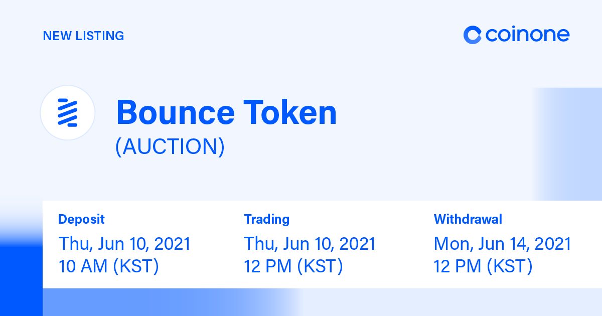 @bounce_finance#바운스토큰 $AUCTION 코인원에 상장됩니다. Listing#BounceToken $AUCTION@CoinoneOfficial KRW market. 입금: 2021.6.10 10:00(KST) 거래: 2021.6.10 12:00(KST) 자세히 보기(More details) https://bit.ly/355i0AZ pic.twitter.com/jawVwZcDhn