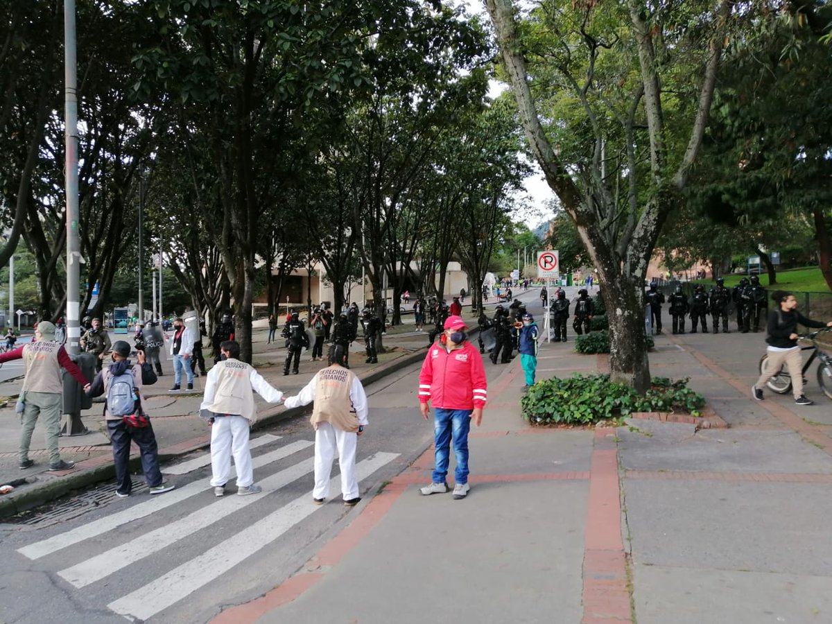Esto luego de que manifestantes hicieran una cadena humana para evitar que ESMAD los atacara.pic.twitter.com/yFIt7juzm4