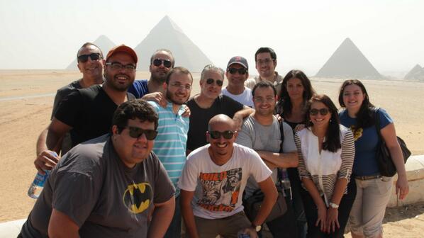 RT @mahagaber: At the Pyramids with Jon Stewart, Bassem Youssef & the entire QSoft Team - what a day :)-