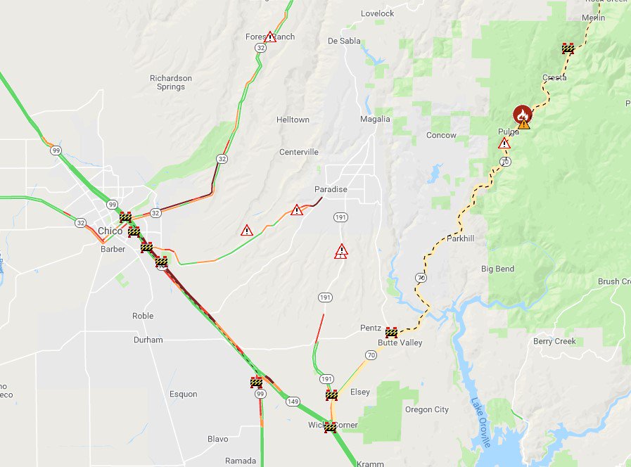 I’m sure this is to help the flow of traffic for #CampFire evacuees and not because of an immediate threat to Chico. Still, this is THE major route through the city, so that says a lot about the fire’s magnitude.https://twitter.com/CaltransDist3/status/1060635965385957376 …