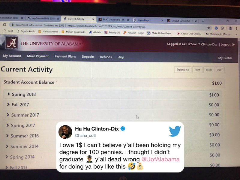 @haha_cd6 says@UofAlabama is holding his diploma for "100 pennies"