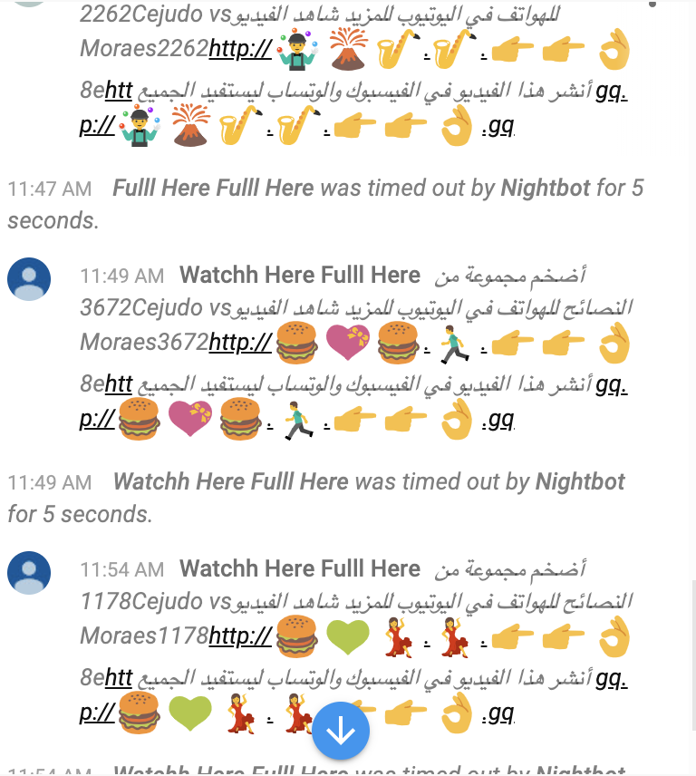 @TeamYouTube Thousands of these spam bots have been appearing in our livechat over the past 48 hours - dispute our filter removing them and continuing to ban them it's still clogging the chat. Can you look into this please?pic.twitter.com/QA6Exdo8fh