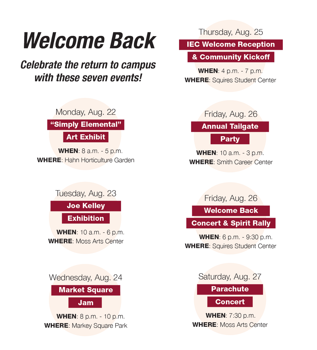 #firstdayofschool hokies! Check out these upcoming events to welcome students back to campus!#VirginiaTechpic.twitter.com/cywPW9BYQK