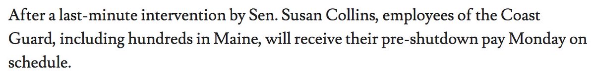 @dcexaminer suggests Trump told staff to resolve the issue on *Wednesday*--2 days before what PPH describes (w/o evidence beyond Collins own words) as Collins "last minute intervention." Both can't be right.#mepolitics@cliffschechtmanhttps://www.washingtonexaminer.com/washington-secrets/trump-personally-intervened-to-pay-coast-guard-in-shutdown …Show this threadThanks. Twitter will use this to make your timeline better. UndoUndo -