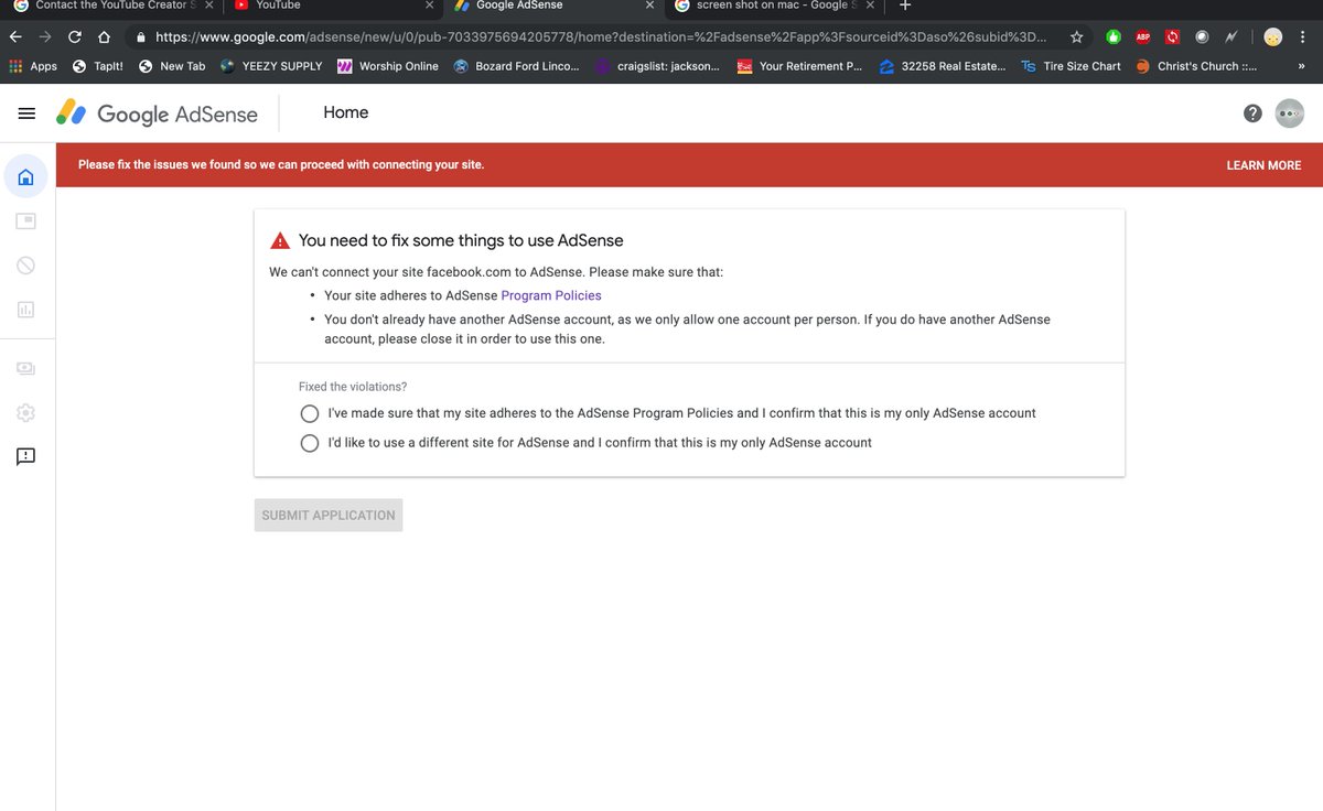 @TeamYouTube Could you guys look at this image and see and tell me what I have to do to fix this for Adsense to work properly.pic.twitter.com/CLP85uFHh7