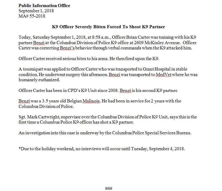 Sending our condolences to Officer Carter, as well recovering and healing for him emotionally, physically, and mentally. In addition, CPD. Rest In Peace K9 Benzi