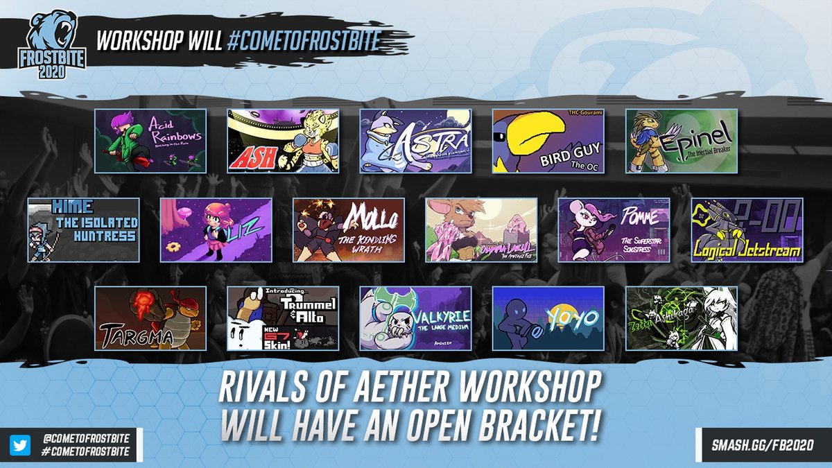@RivalsOfAether fans: We are bringing you a Workshop Bracket to Frostbite 2020! Registration is LIVE now on our@smashgg page Register